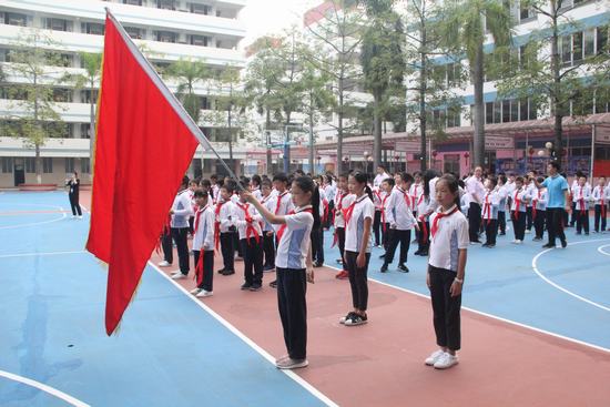 伴随着嘹亮的少年先锋队队歌,少先队旗手与护旗手们迈着整齐的步伐,精神抖擞地进行着庄严的少年先锋队队旗出旗仪式。活动在雄壮有力的出旗曲中拉开序幕!