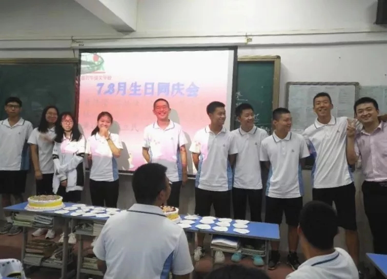 为增强同学们的团队凝聚力,丰富校园文娱活动,让同学们在学校中也能感受到家的温馨,我校每月都会为同学们举办生日同庆会。8月8日晚,我校高三年级开展了主题为“生日同庆,共享快乐”的生日同庆会活动,为七月、八月的小寿星庆生。