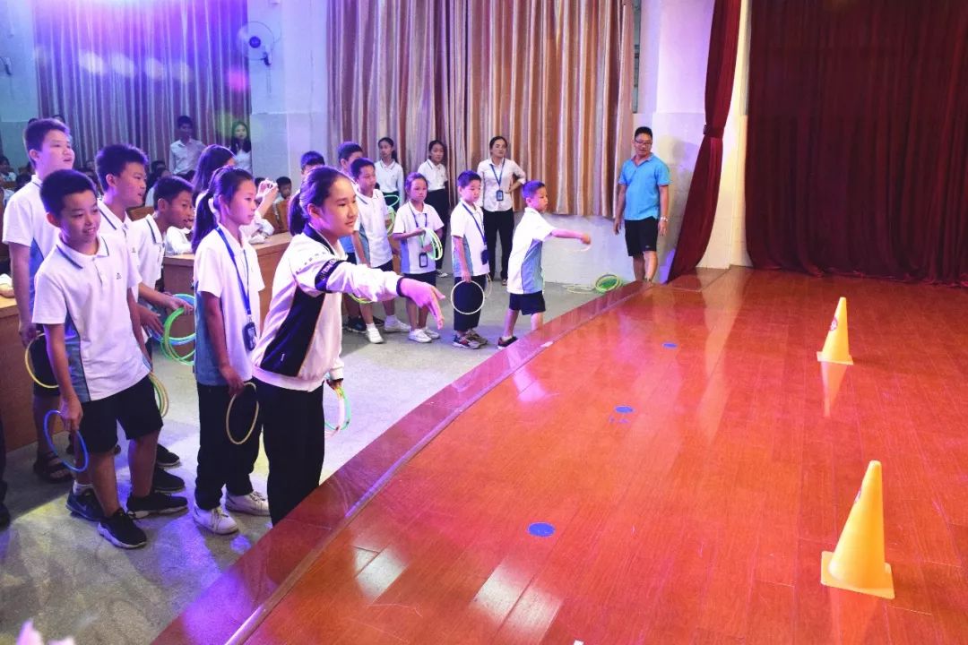 最激动人心的就是游戏环节了。体育老师早已为孩子们准备好了游戏节目。看,孩子们排着长队,手里拿着套环,看着前面的目标物,听着台下的阵阵加油声,每个孩子都跃跃欲试,要在台上一展身手。
