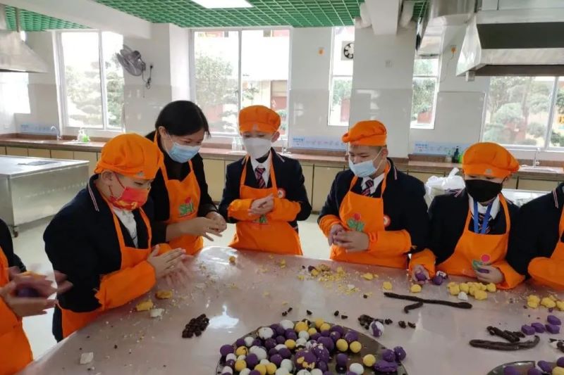 学校自2012年起开设烹饪特色课——“快乐厨房”,让劳动教育既有趣味性、体验性,又富有内涵,充分融合学生生活,实现全方位育人。从幼儿园到高中,每周都会进行“快乐厨房”实践课。